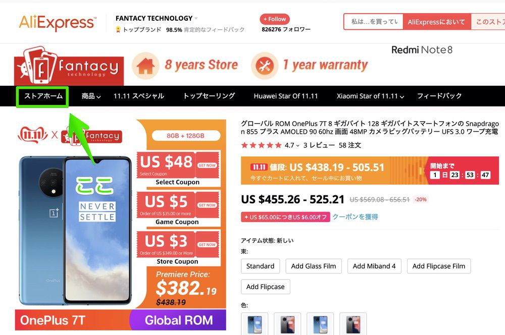▼まず、セール価格なんですが、何月何日何時からセール価格になるか確認が製品ページで確認できます。ちなみに以下はOnePlus 7T。この価格でも恐ろしく安い。↓