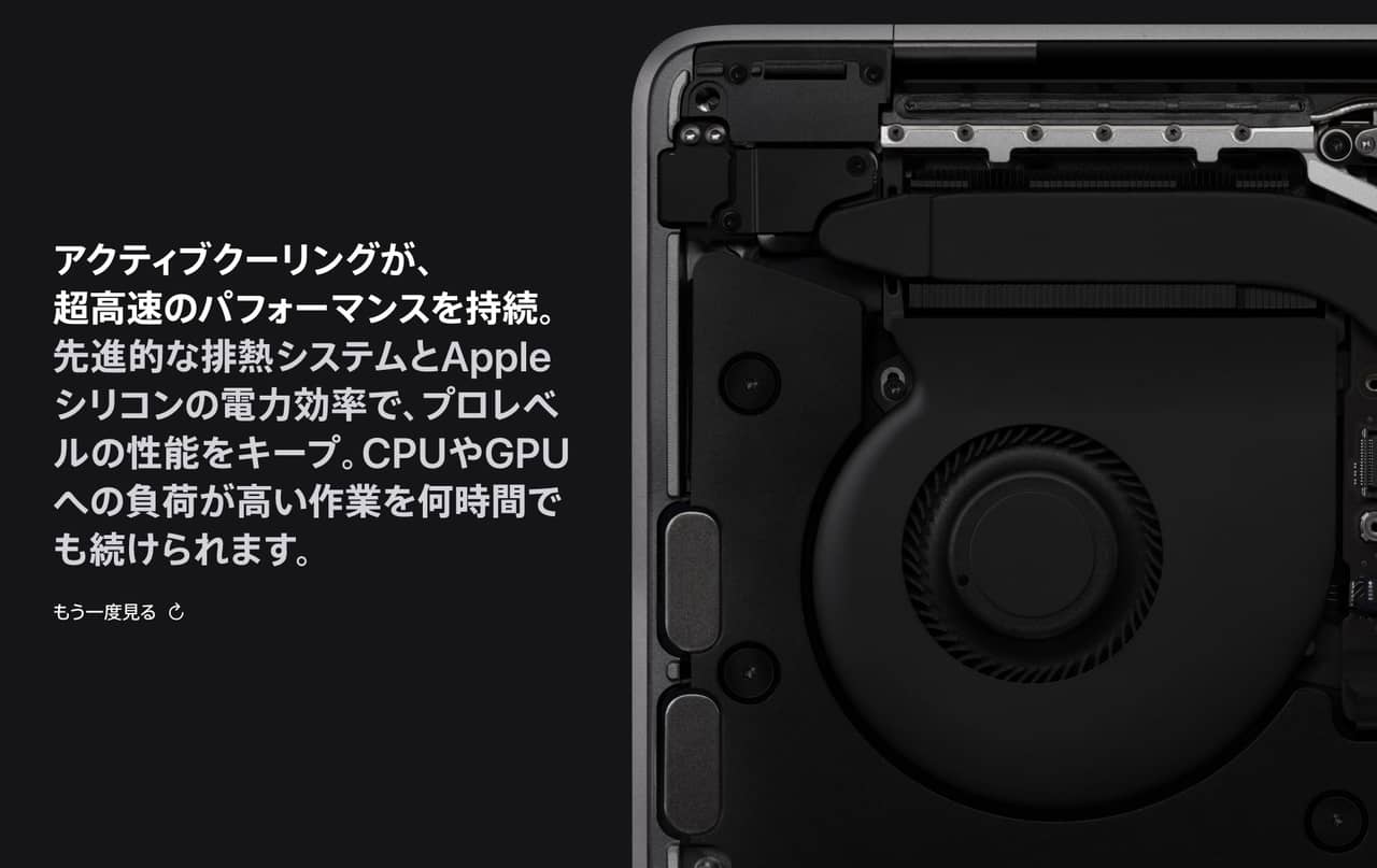 ▼Proモデルってことで高パフォーマンスを長時間維持できるよう空冷ファンが搭載されているのがAirとの違いでもあります。まあこれも前モデルと一緒だけど。↓