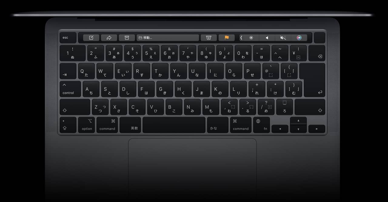 ▼なので、悪名高き?Touch Bar付きのキーボードを引き続き採用。↓