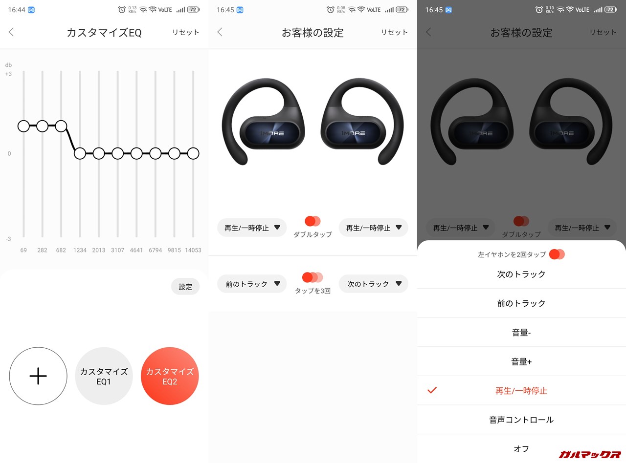 ▼アプリではイコライザー機能やタップ時の動作をカスタマイズすることも出来るようになっていました。↓