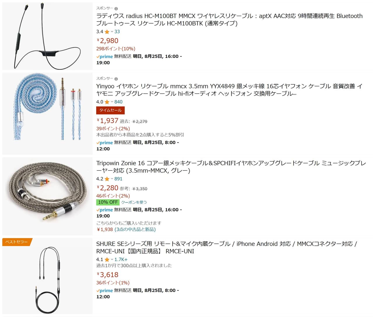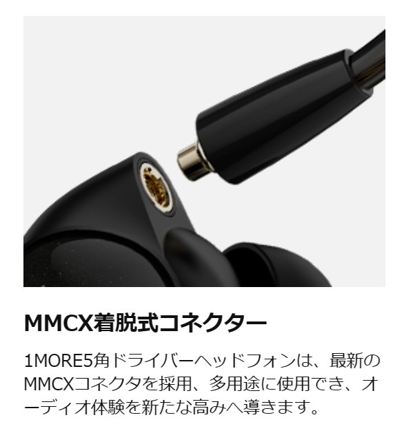 ▼1MORE ペンタドライバー P50のコネクタタイプはMMCXって規格。AmazonでMMCXで検索をかければ対応するケーブルも出てきます。↓