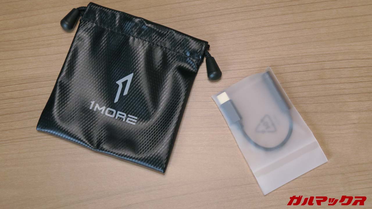 ▼付属品は7組のイヤーピースと収納ポーチ、そしてDAC対応のType-C変換アダプタのセット!特にこの変換アダプタが有難い。イヤホンジャックのないスマホでも使えるしDACでないと使えないGalaxy S20 FEでも使えるし。↓