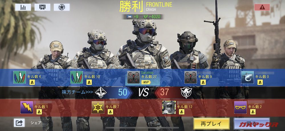 ▼通知センター誤爆によるプチフリもなくなり戦績もグッと向上して27キル!↓