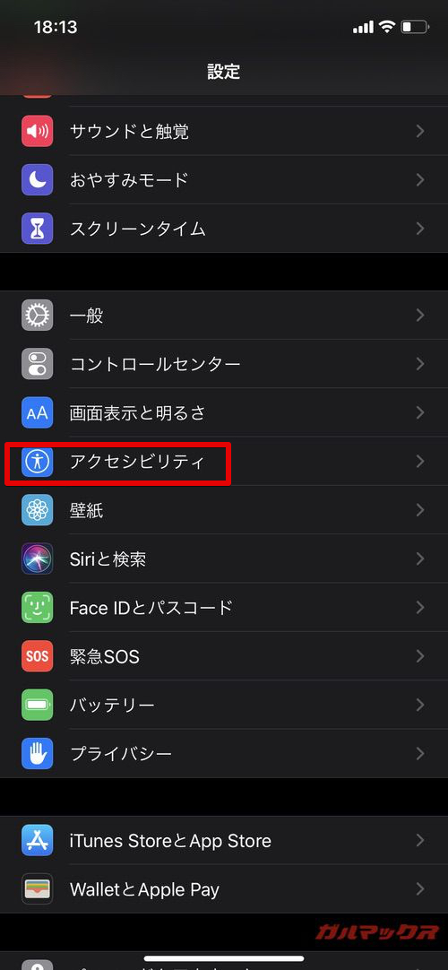 ▼iPhoneの設定を開いて「アクセシビリティ」をタップ↓