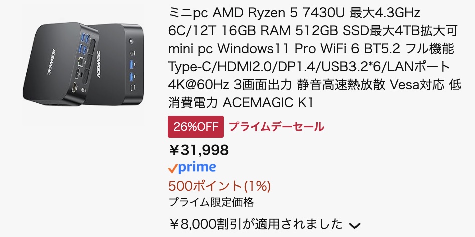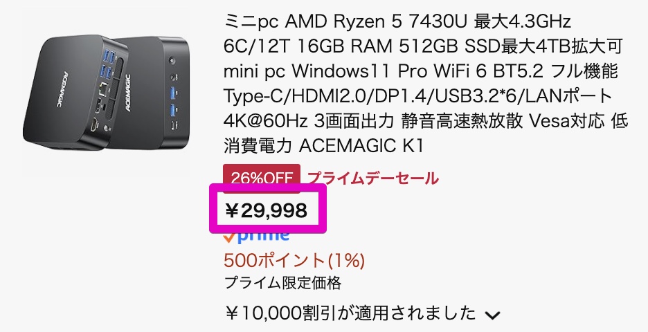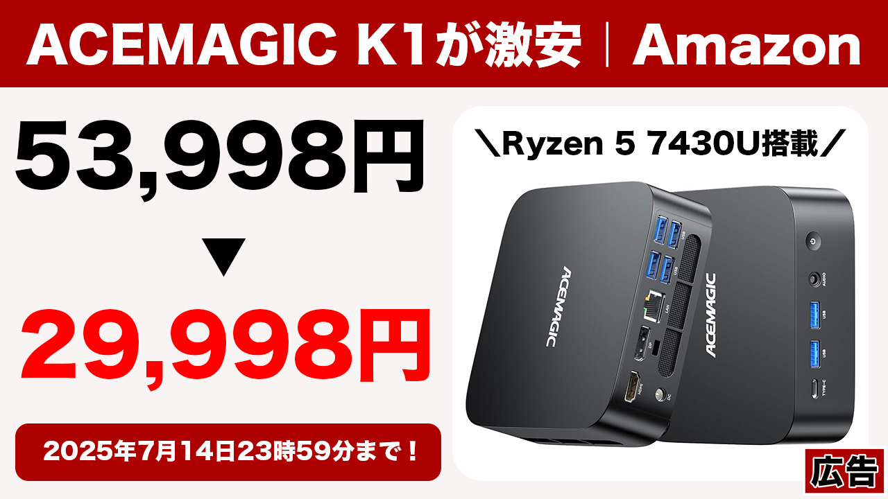Ryzen 5 7430U搭載ミニPC「ACEMAGIC K1」がセールで29,998円になるぞ!