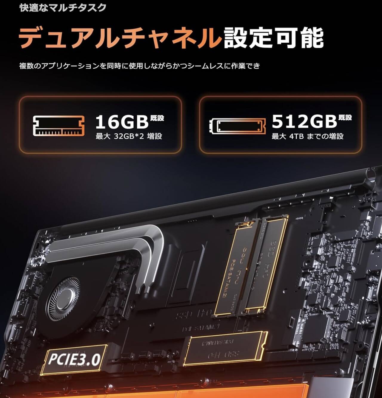 ▼メモリは16GB、ストレージは512GBと十分な容量を確保!↓