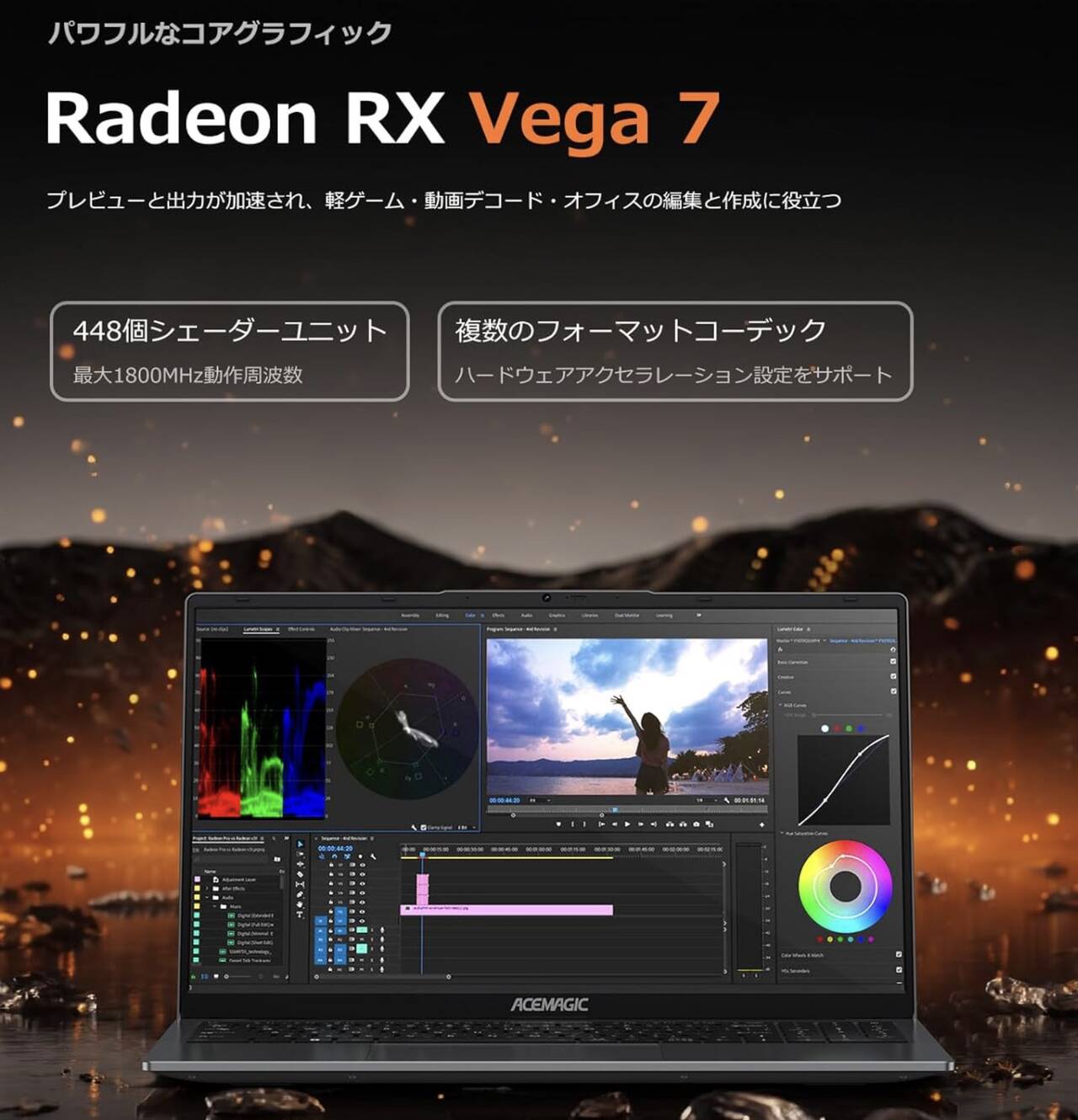 ▼搭載するGPUはRadeon RX Vega 7!軽めのゲームくらいは動く可能性は高いが、所詮オンボードGPUなのでゲームは動けばラッキー程度に考えておくのが吉。↓