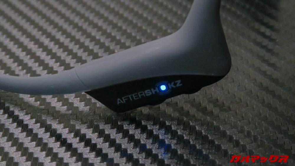 電源をつけたら「アフターショックスへようこそ!」接続時は「接続しました」ペアリングするときは「ペアリングモードに移行します!」と、マジで音声は流暢です。たぶん日本の人の声。さすが高価なモデルだけあってしっかりしていますなぁ。