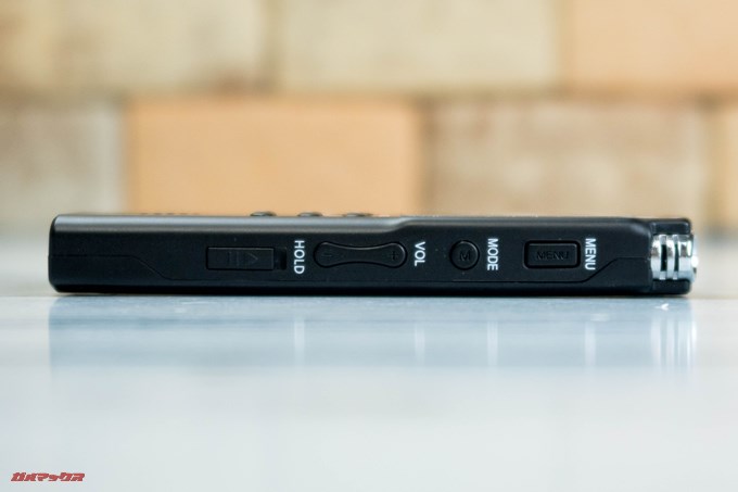 ▼本体右側面にはMENUやMODE、ボリュームキー、誤った操作を防ぐスライド式のホールドスイッチが備わっています。↓