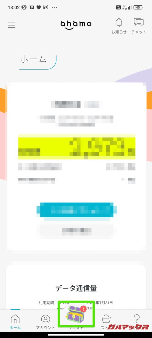 ahamoは通信容量やプランの確認・各種申し込みができるahamoアプリをリリースしてるんですが、ahaクエストはこのアプリからチェック出来るそうです!僕も試してみましたがahaクエストボタン出てた!
