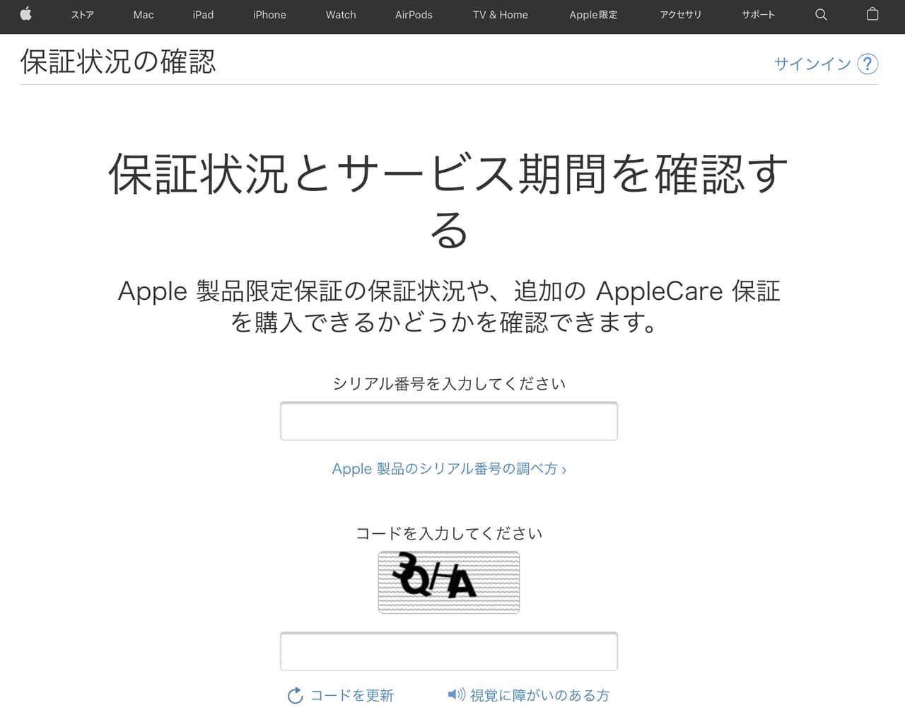 Apple Japanサイトから製品のシリアルナンバーと購入日を記入したら