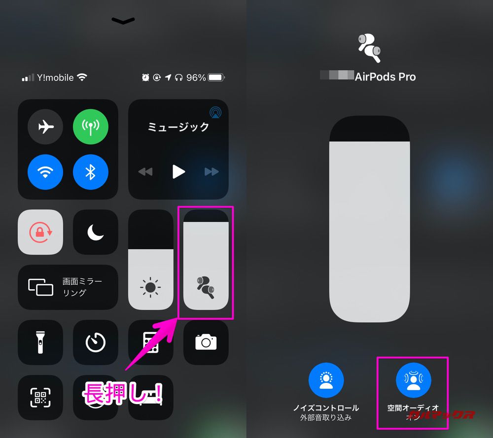 ▼ちなみにコントロールパネルの音量を長押しすることで空間オーディオを簡単にオン・オフすることも出来ます!↓