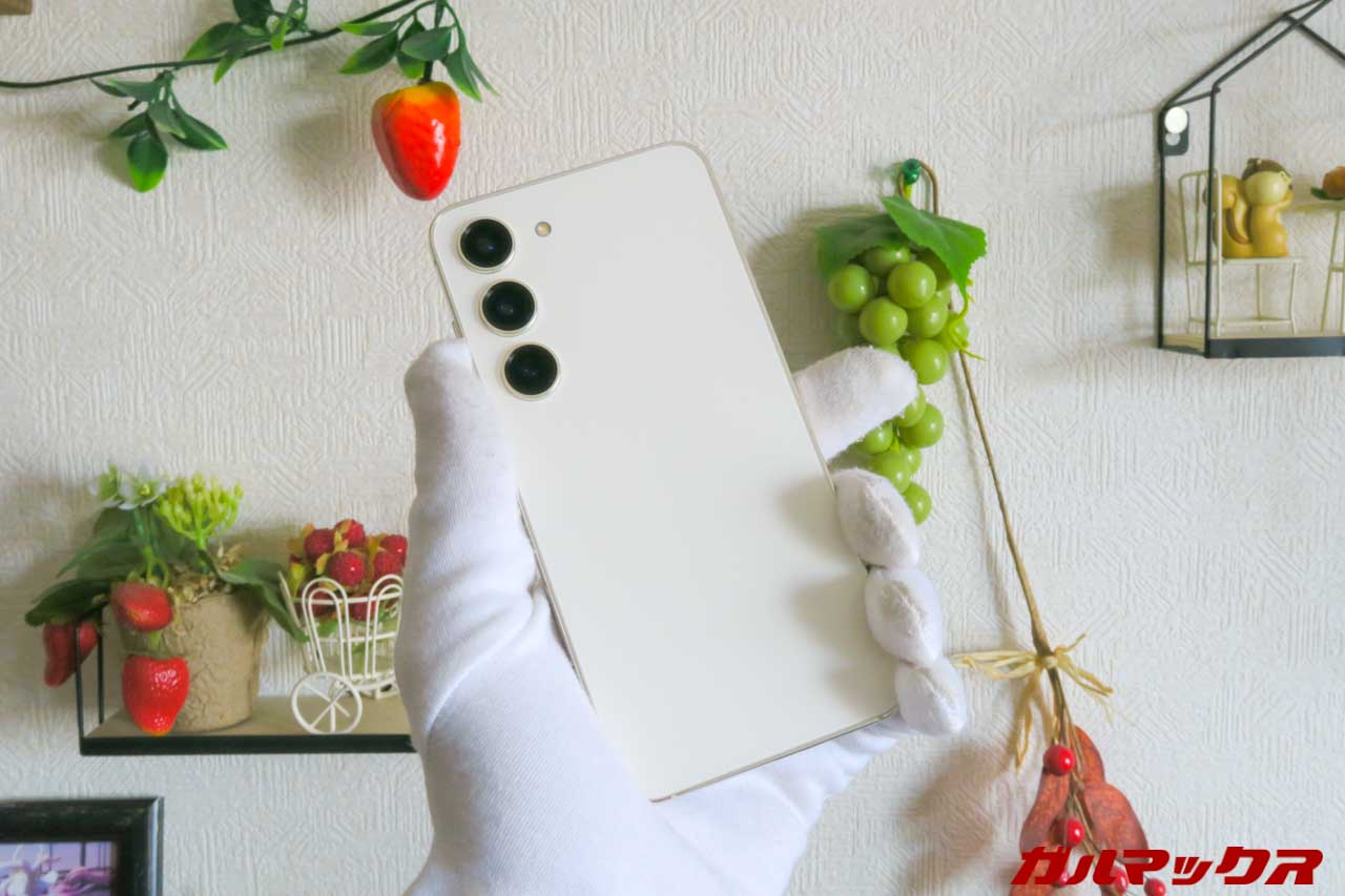 言わずとしれたハイエンドモデルのGalaxy S23!このモデルの魅力はなんといっても最強レベルのハイエンド性能を持ちながら、6.1型ととってもコンパクトな点にあります。日本のコンパクトカーのように小さくて中身が詰まっているスマホ。それがGalaxy S23なんす。