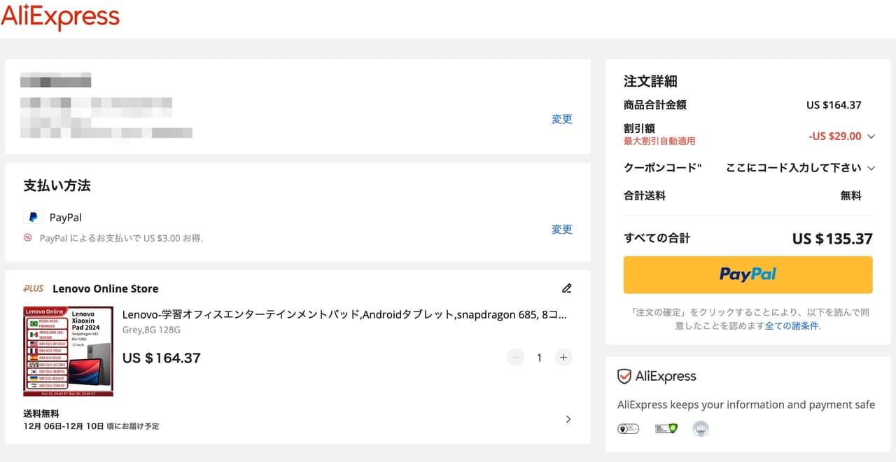 セール時の最終価格は135.37ドル(約2万円)!本国直販よりも少し安い!本国の直販は輸入のハードルが少々高めなので、比較的楽に入手が可能なAliexpressで最新モデルが安く買えるのは大きいでしょう。