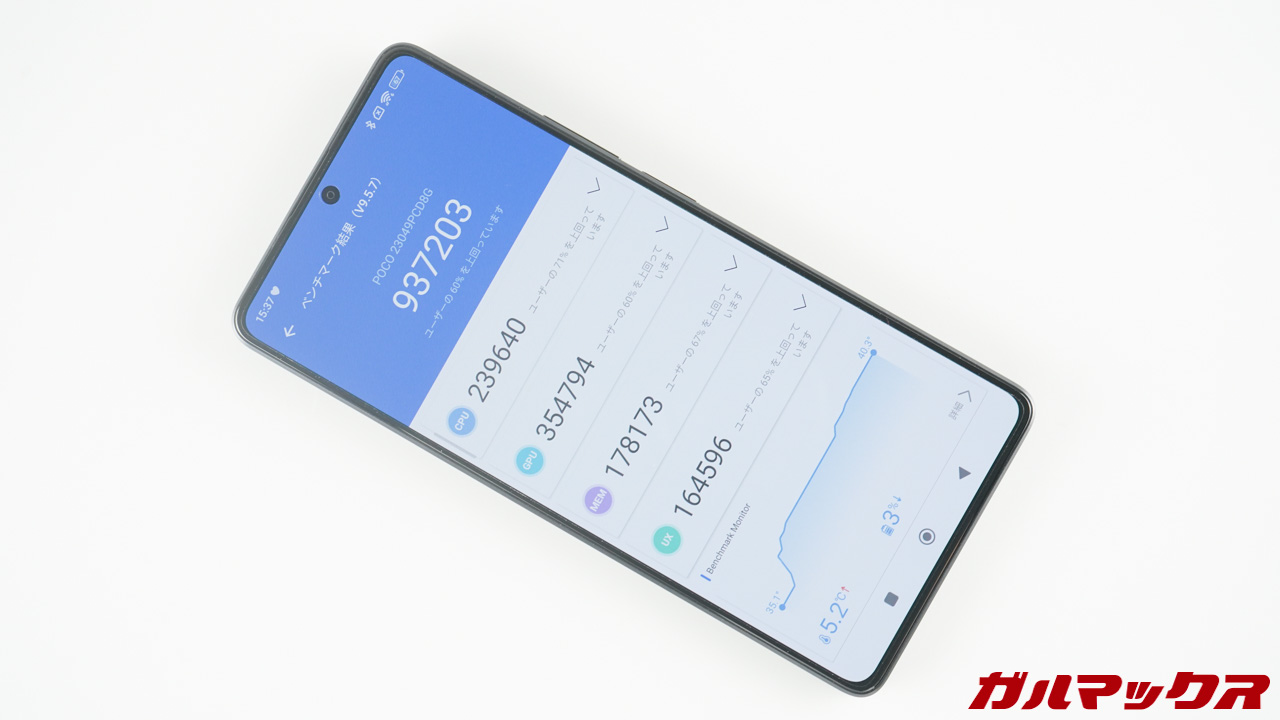 ▼SoCは安定性に定評ある3.0GHz版のSnapdragon 8+ Gen 1を搭載。その性能はSnapdragon 7+ Gen 2を軽々超えます。↓