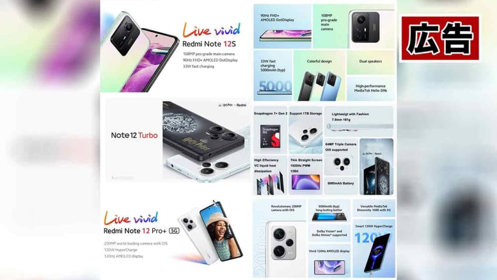 Xiaomiの廉価ブランドRedmi3機種がセール中!90Hz有機EL搭載のRedmi Note 12Sは約2.2万円~とかなり安価!またハイエンドに迫るSnapdragon 7+ Gen 2のNote 12 TurboやDimensity 1080搭載モデルのNote 12 Pro+もラインナップされています。