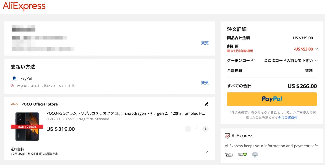 ▼[AliExpress]セール価格から更にレジで自動割引にて266ドル(約4万円!)↓