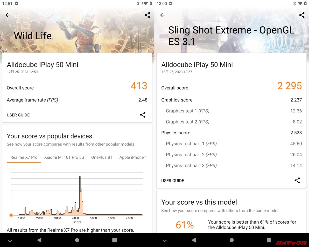 ゲームの性能もSoCのランクで決まってきます。ってことで、ALLDOCUBE iPlay 50 mini NFEのゲーム性能も一番下っ端クラス。