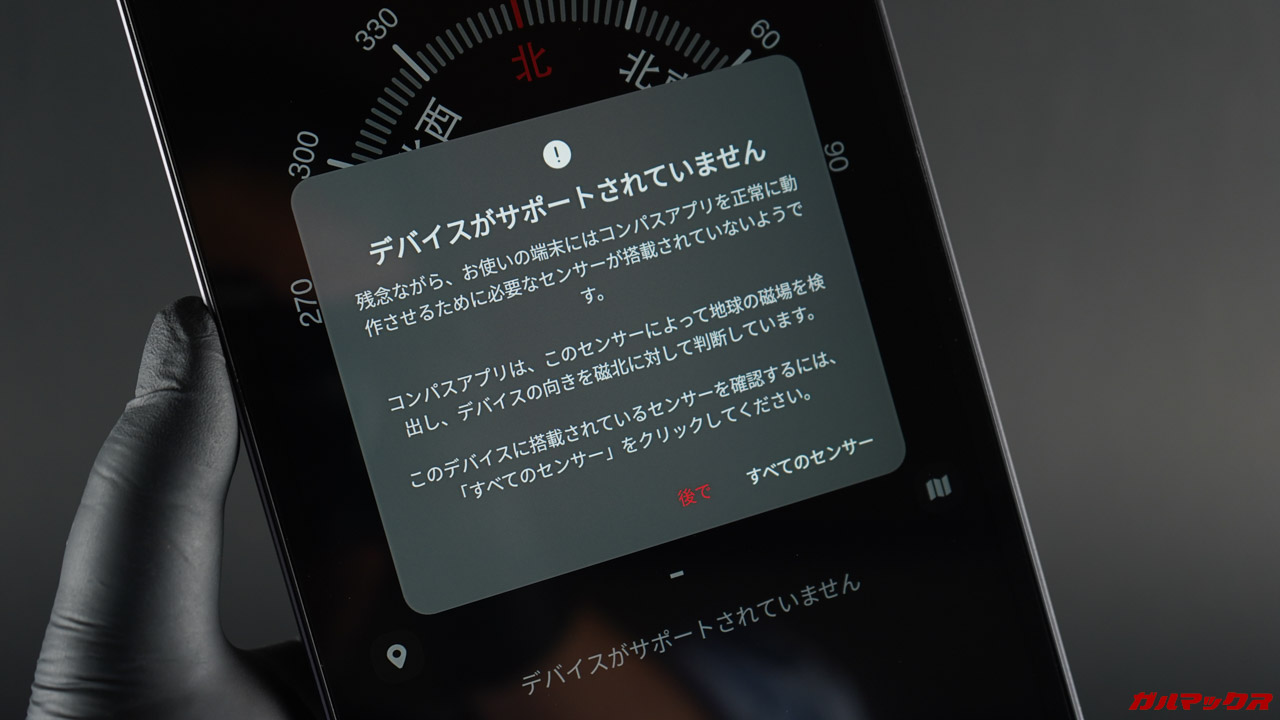 ▼個人的に電子コンパスに対応しているか気になってましたが、残念ながら非対応でした。↓