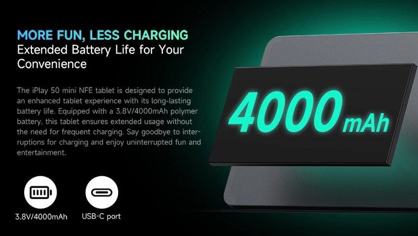 バッテリー容量についてはALLDOCUBE iPlay 50 miniと変わらず4,000mAh!