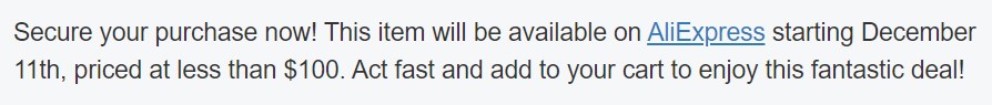 ▼ちなみに公式サイトでは12月11日から初売りセールで100ドル以下で出すぞと予告が出てる…!↓