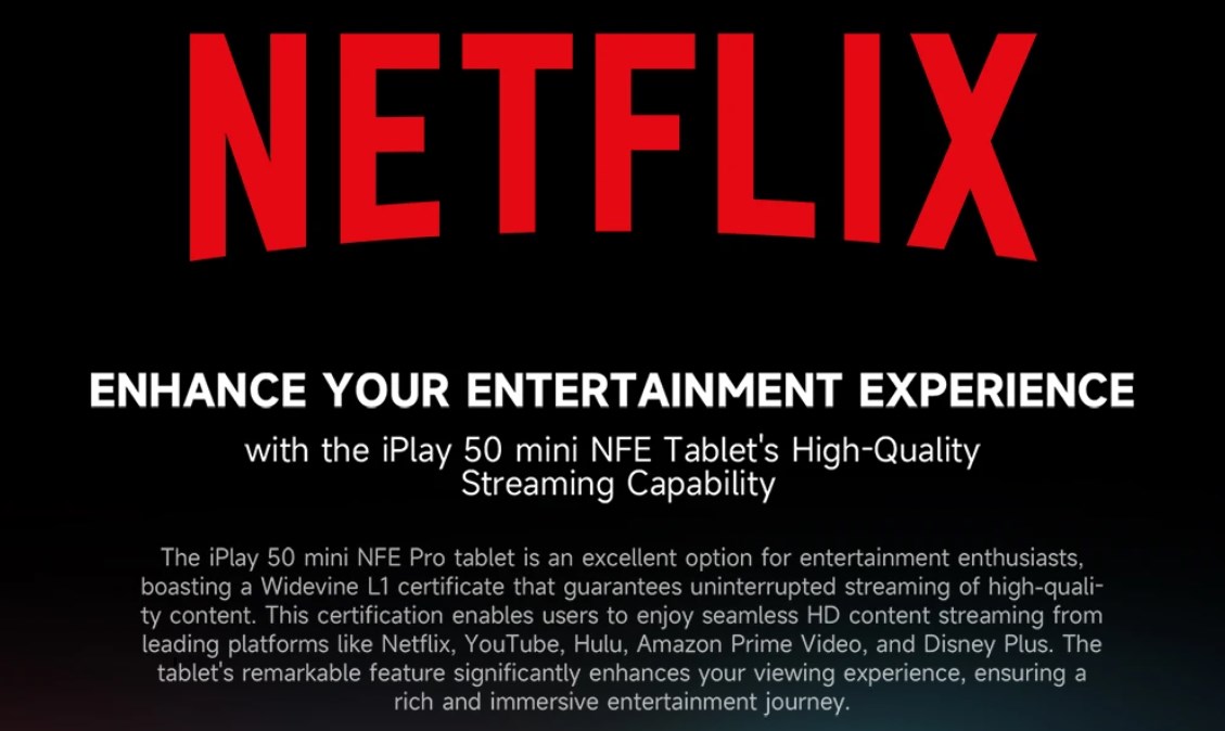 ところがドッコイ!ALLDOCUBE iPlay 50 mini NFEはその問題を突破したモデル!嬉しい!わざわざNFE(Netflix Edition?)という製品名でNetflix Widevine L1対応をウリとして単発投入してくるくらいだから、相当な需要があったんですかね?