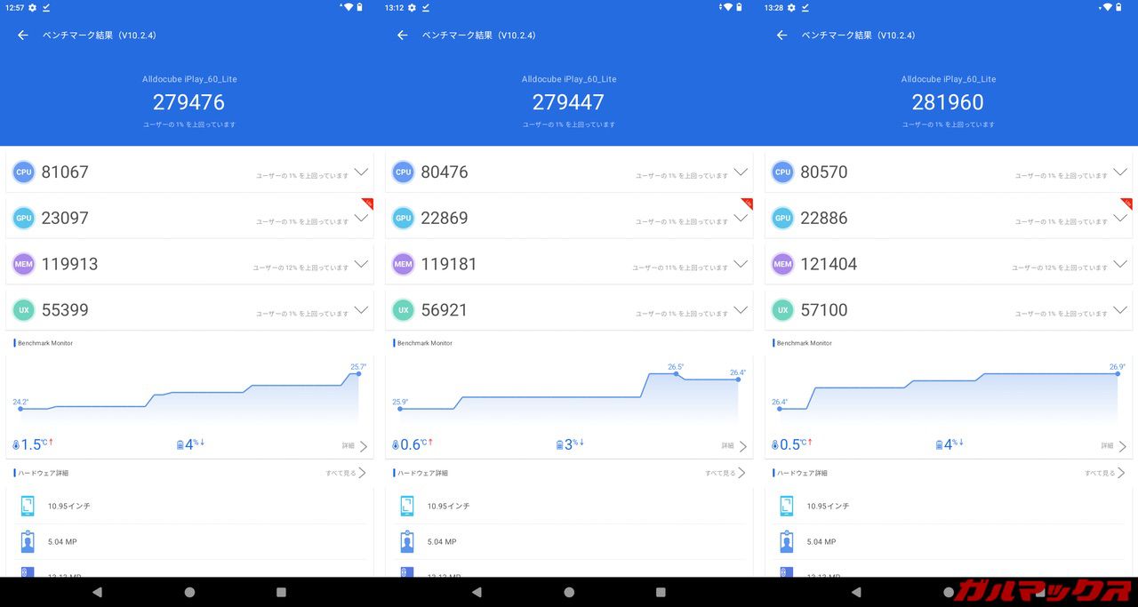 ▼ミドルレンジなので発熱による性能低下も無いですね。↓