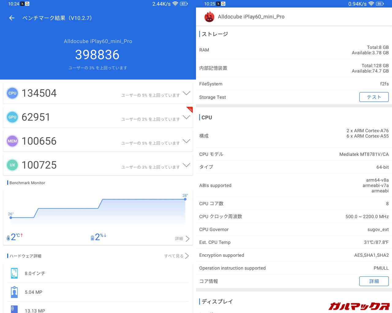 ▼Helio G99がどの程度動くSoCなのか以下の記事で解説してます!SoCが同じなら動きも大体同じっす。本機の動作も以下と印象変わらずって感じなので参考にしてみてください!↓