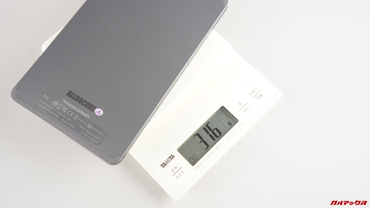 ▼重量はフィルム込みで316g。筐体サイズの割に軽いので重くは感じません。↓