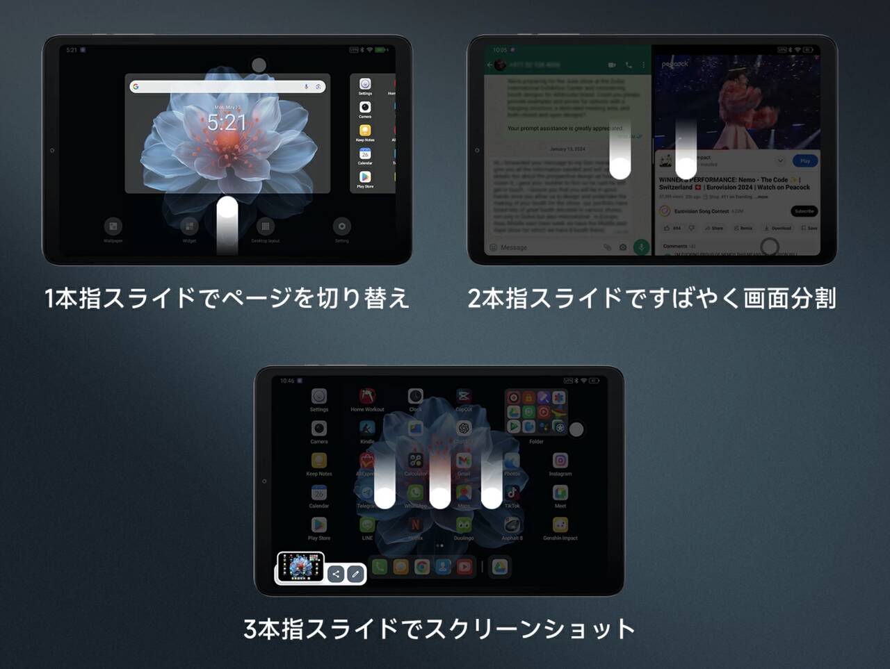 ▼これ独自の操作や表示が結構使いやすそうなんよね。2本指スライドの画面分割とかめっちゃ使いそう。↓
