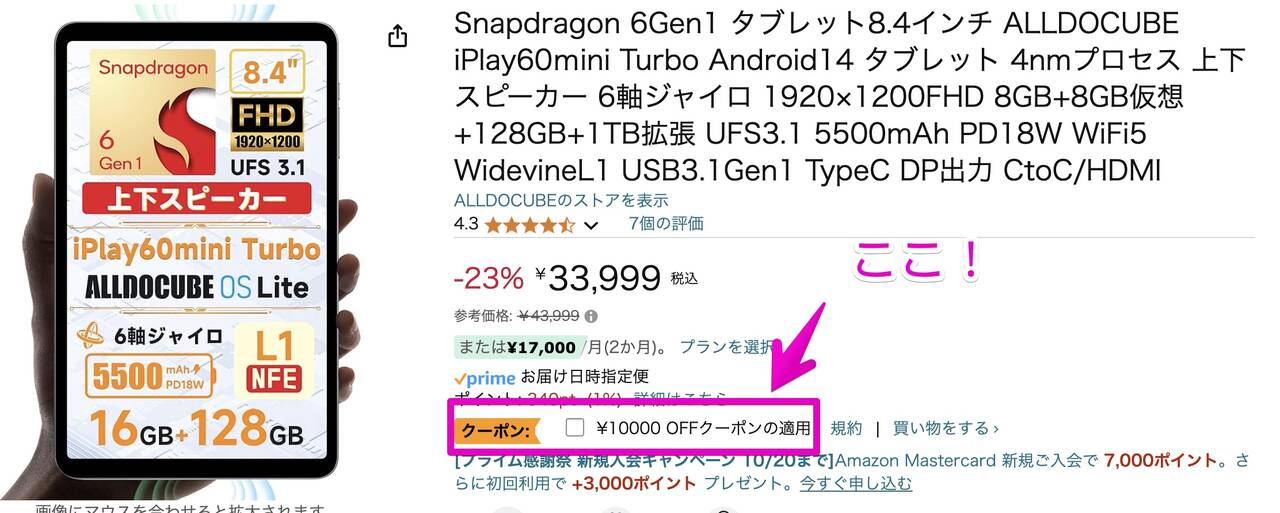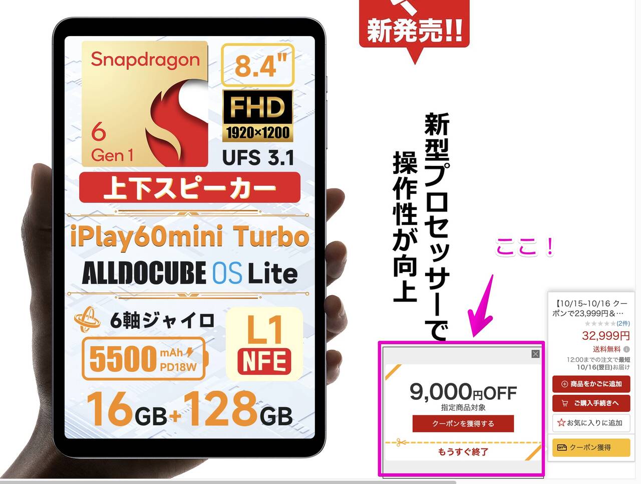 ALLDOCUBE iPlay 60 mini Turboは既に日本で販売を開始していて現時点の価格は33,999円。
