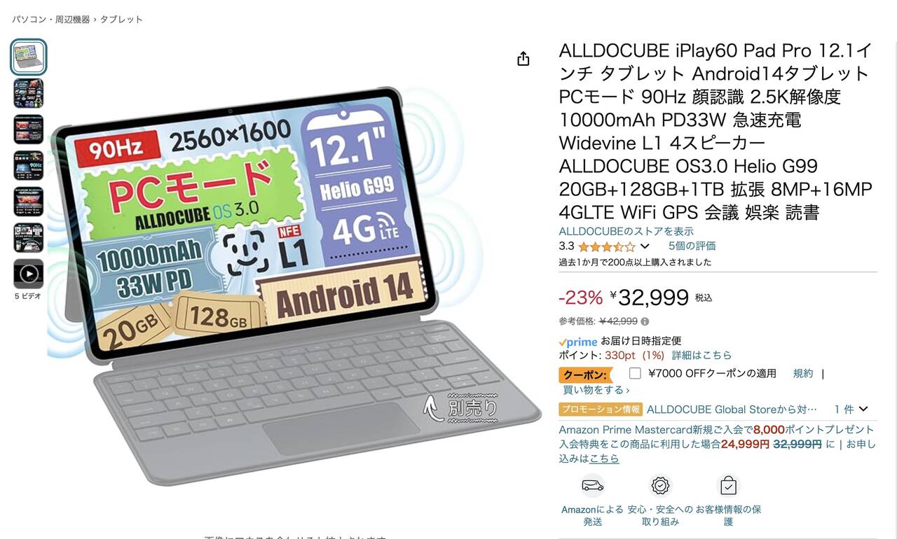 ▼32,999円で7,000円オフクーポンあり。この仕様で最終価格25,999円なら・・・ええじゃないか!↓