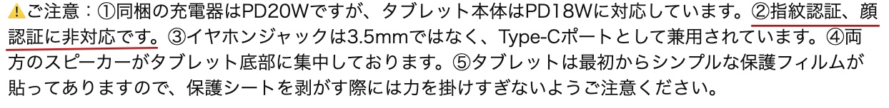 そういえば前モデルはインカメラを使った顔認証に対応していましたが、ALLDOCUBE iPlay 70 mini ProのAmazonページの説明を見ると・・・