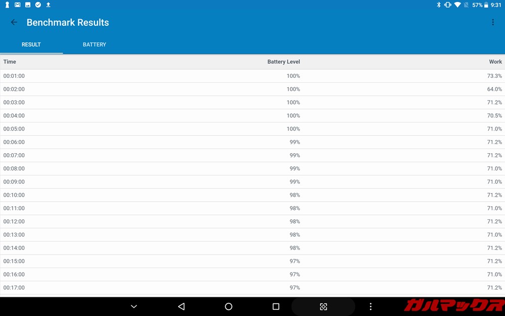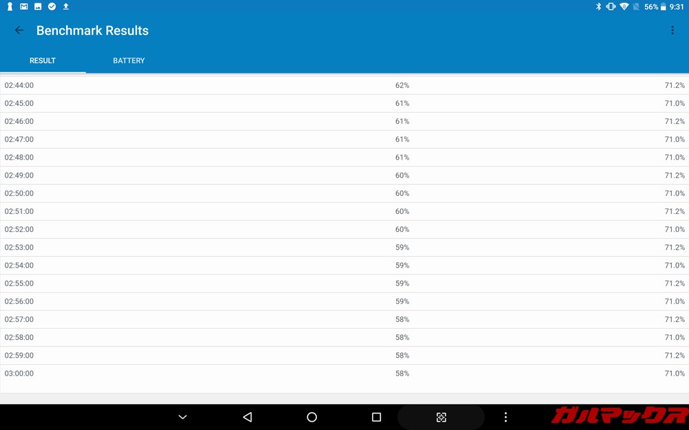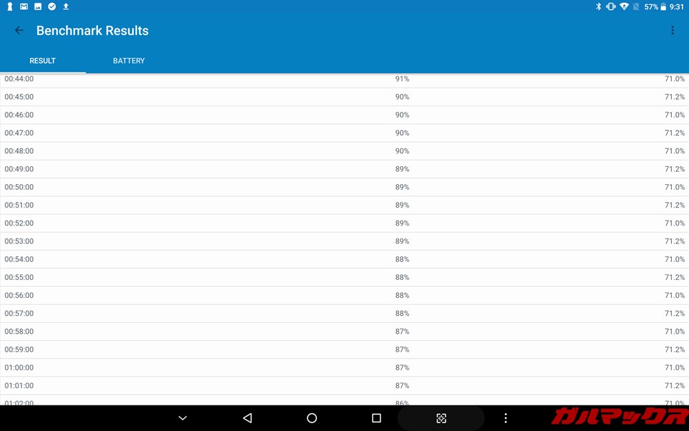 ▼100%状態からテストを行い10%のバッテリー消費で45分でした。約1時間でのバッテリー消費は13%。3時間経過後の残量は58%。バッテリーテスト結果ではALLDOCUBE M5Xのバッテリー持ちは良くありません。輝度調整や場合によってはモバイルバッテリーを持ち歩いたほうが良さげですね。↓