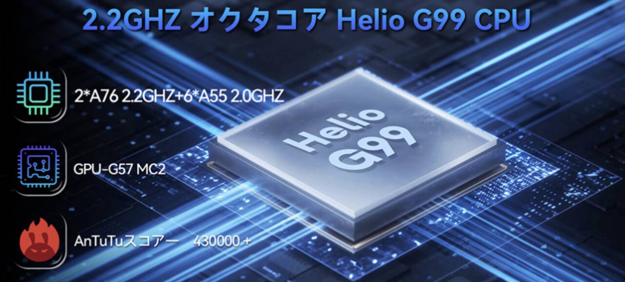 最近は後継のHelio G100を搭載するタブレットもチラホラ出てきたんですが、G100はG99と性能がほぼ変わらないので、まだまだHelio G99も現役感がありますねぇ。