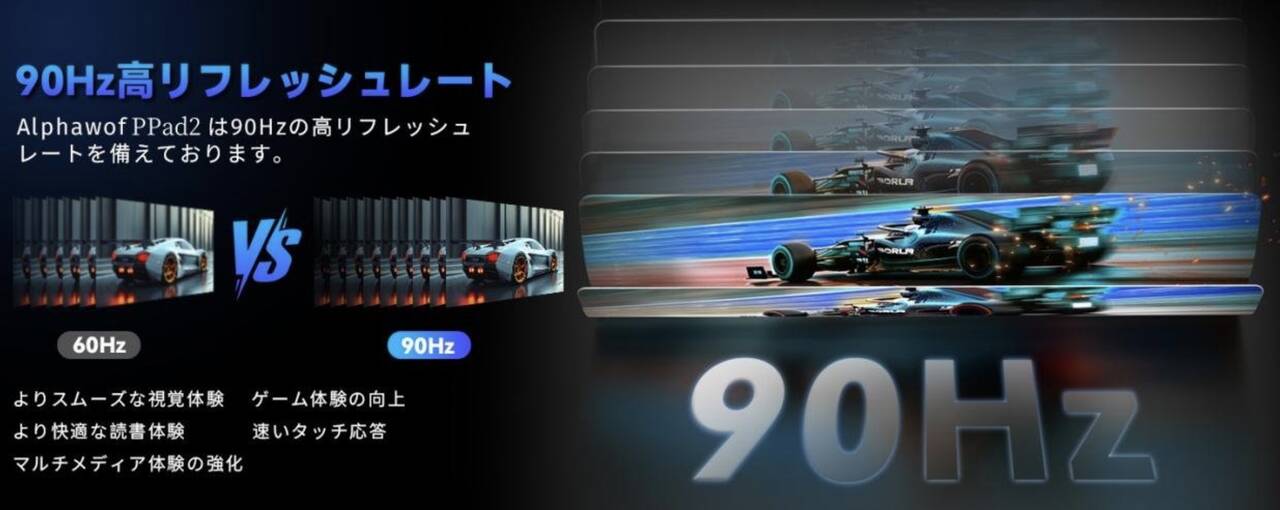Alphawolf PPad2は標準的な60Hzのディスプレイよりも1.5倍滑らかな90Hz表示にもバッチリ対応しちゃってます。60Hzのモデルと比べるとかなりヌルヌル感は変わりそうですねぇ〜!