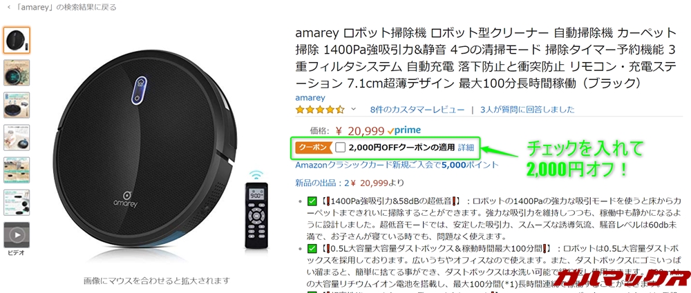 日本で販売している有名メーカーのロボット掃除機は価格がかなり高いので躊躇してしまいますが、amarey A800ならロボット掃除機として必須の機能は網羅している&約2万円と安価なので初めてのロボット掃除機としてもオススメです!