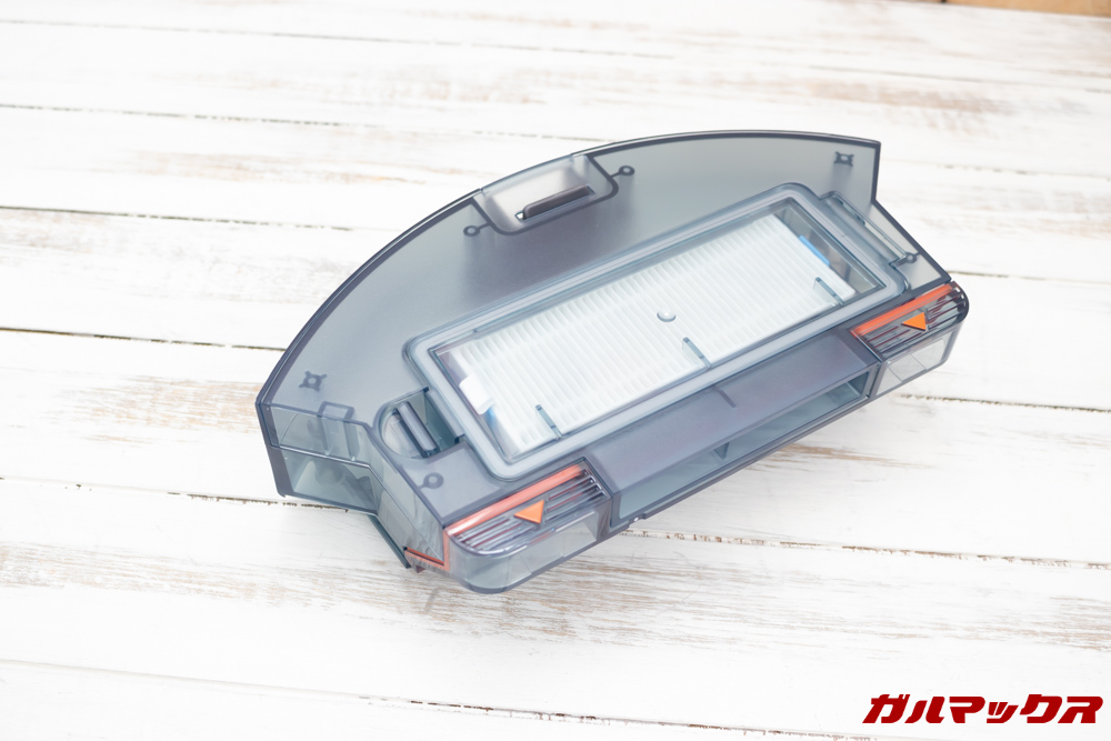 ▼amarey A800のダストボックスは本体の背面に備わっているので充電台に乗っている状態でもアクセス可能。↓