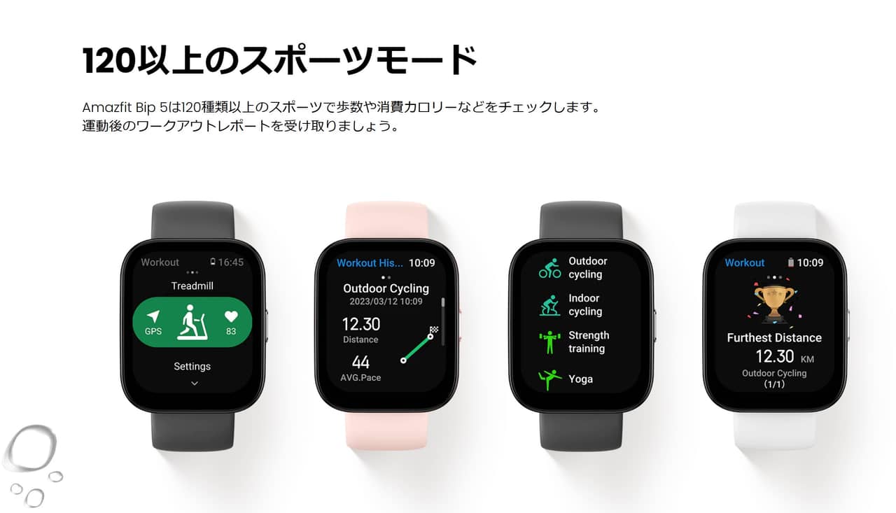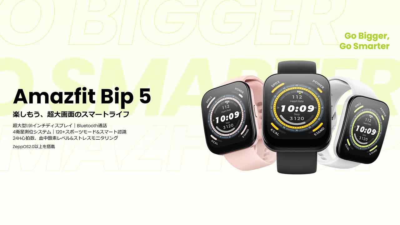 「Amazfit Bip 5」発表!1.91型大型画面、Alexaや通話機能も対応でスポーツ測定は120種類以上に対応!