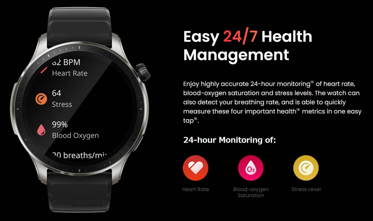 • 心拍数やストレス、血中酸素濃度の24時間測定に対応