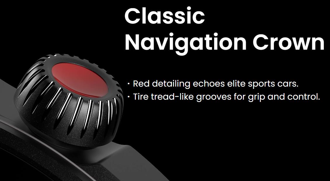 ▼またボディには2つの物理ボタンが搭載されており、1つはクラウン型を採用!手袋でも操作しやすいらしい!↓