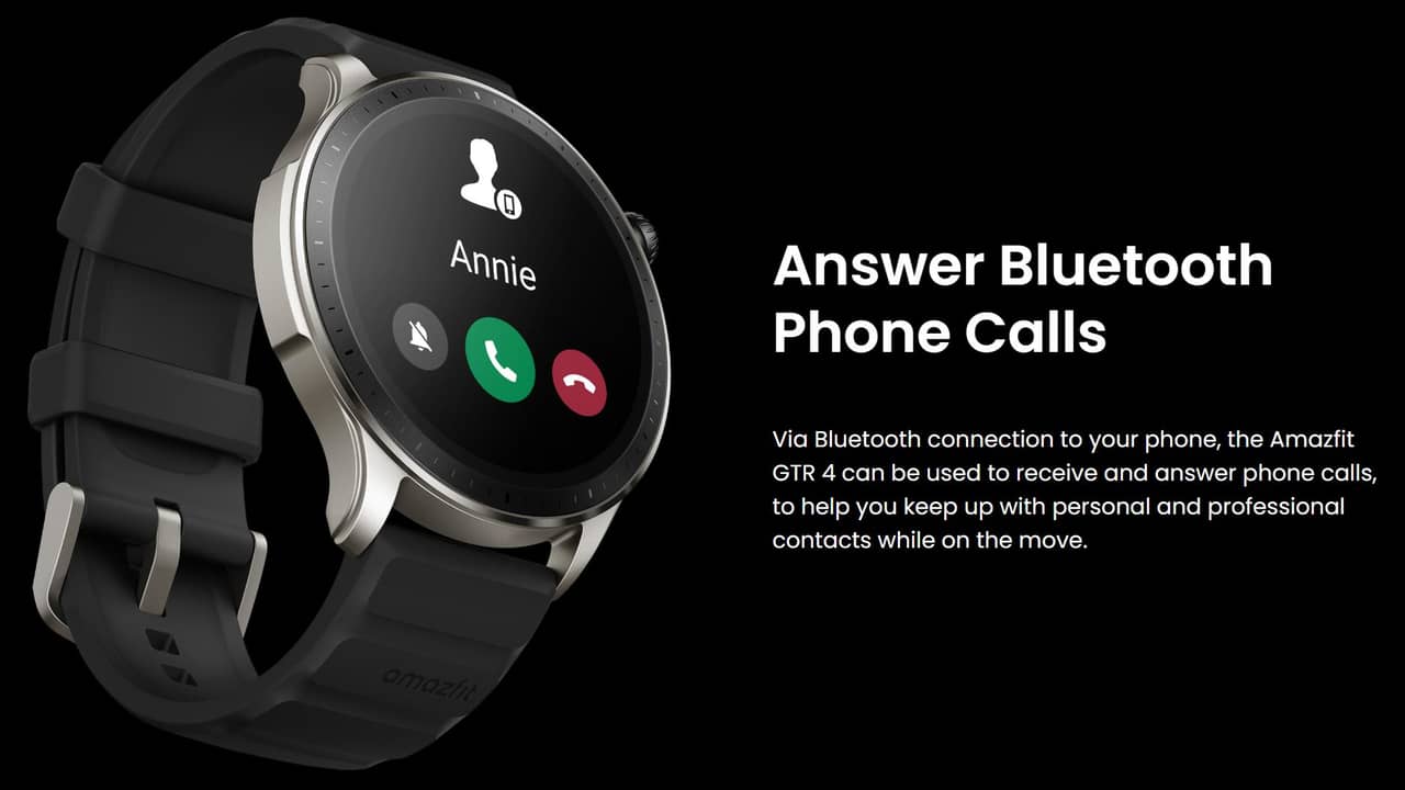 ▼スピーカーとマイクも搭載しており着信もAmazfit GTR 4本体で応答できるのがグッド!スマホが手元に無くてもサクッと通話応答できるのが便利なんだよなこれ!↓