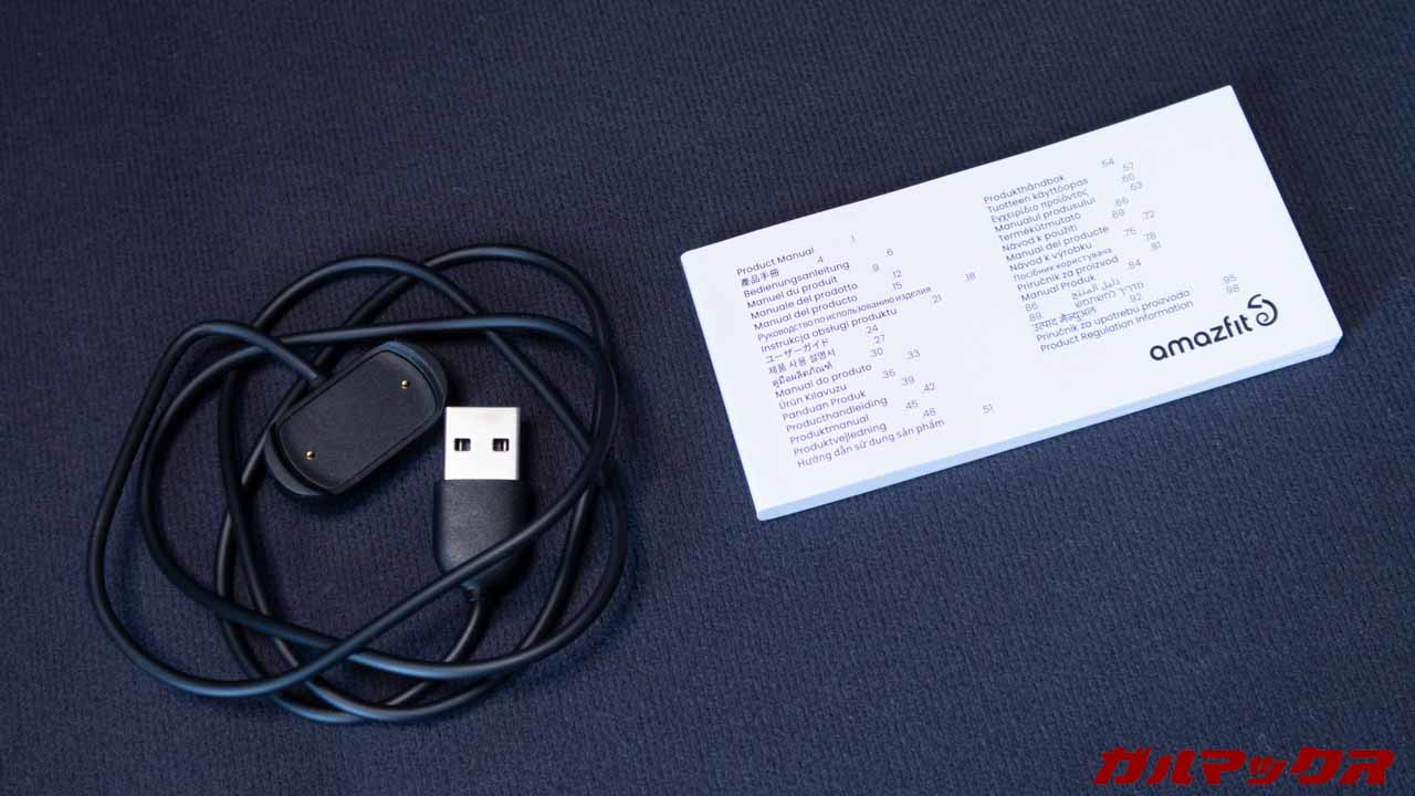 ▼付属品はこんな感じ。マグネットの充電ケーブルと説明書。↓