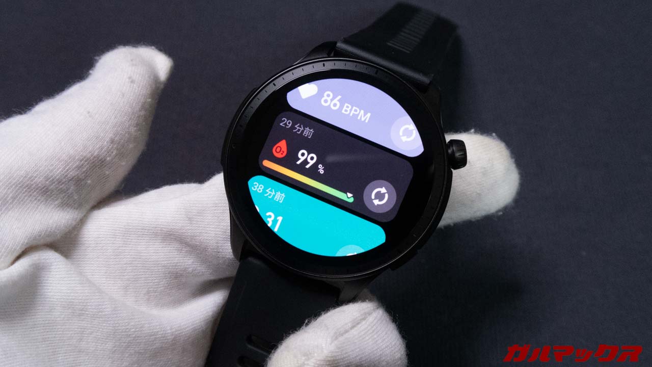 ▼Amazfit GTR 4は健康管理や運動測定に重きをおいているモデル。それゆえ健康管理の測定項目は非常に豊富ですし、それらを1画面でまとめて確認できるショートカットカードっていう画面があって見やすかった!↓