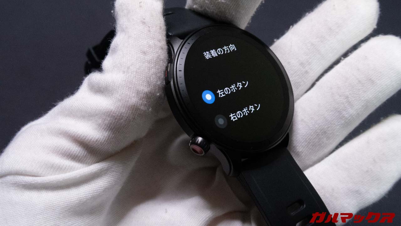 ▼あと装着している腕に合わせて画面表示の向きも変えられるので、右腕に付けたいけどクラウンがもう片方の腕で操作しにくい…って問題も対策できるのはありがたかった。筆者は右腕でも付けることが多いので尚更です。クラウンは下側になるけど。↓