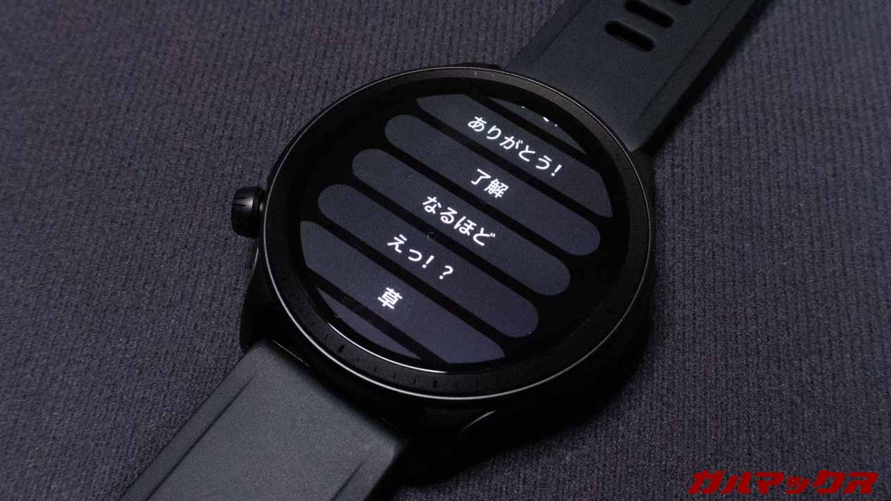 ▼なんとこのモデル、スマホのアプリで定型文を設定しておけば、通知のクイック返信でワンタップで応答できるんすよ。「草」だの「了解だぜ」的な自分らしいワードを突っ込んでおけば、いちいちスマホ出さなくても返信できてチョーらくちん。↓