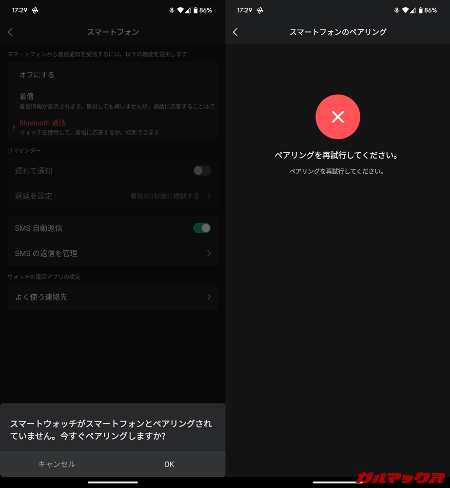 追記:読者様より情報を頂きました!ZEPPアプリからペアリングせずに、Amazfit GTR 4の設定からBluetoothをオンにしてスマホとペアリングするとBluetooth通話が使えるとのことです!どうやら、ZEPPアプリでのペアリングとAmazfit GTR 4の設定でBluetoothをオンにして直接接続する方法では、スマホ側での認識が異なるようです。