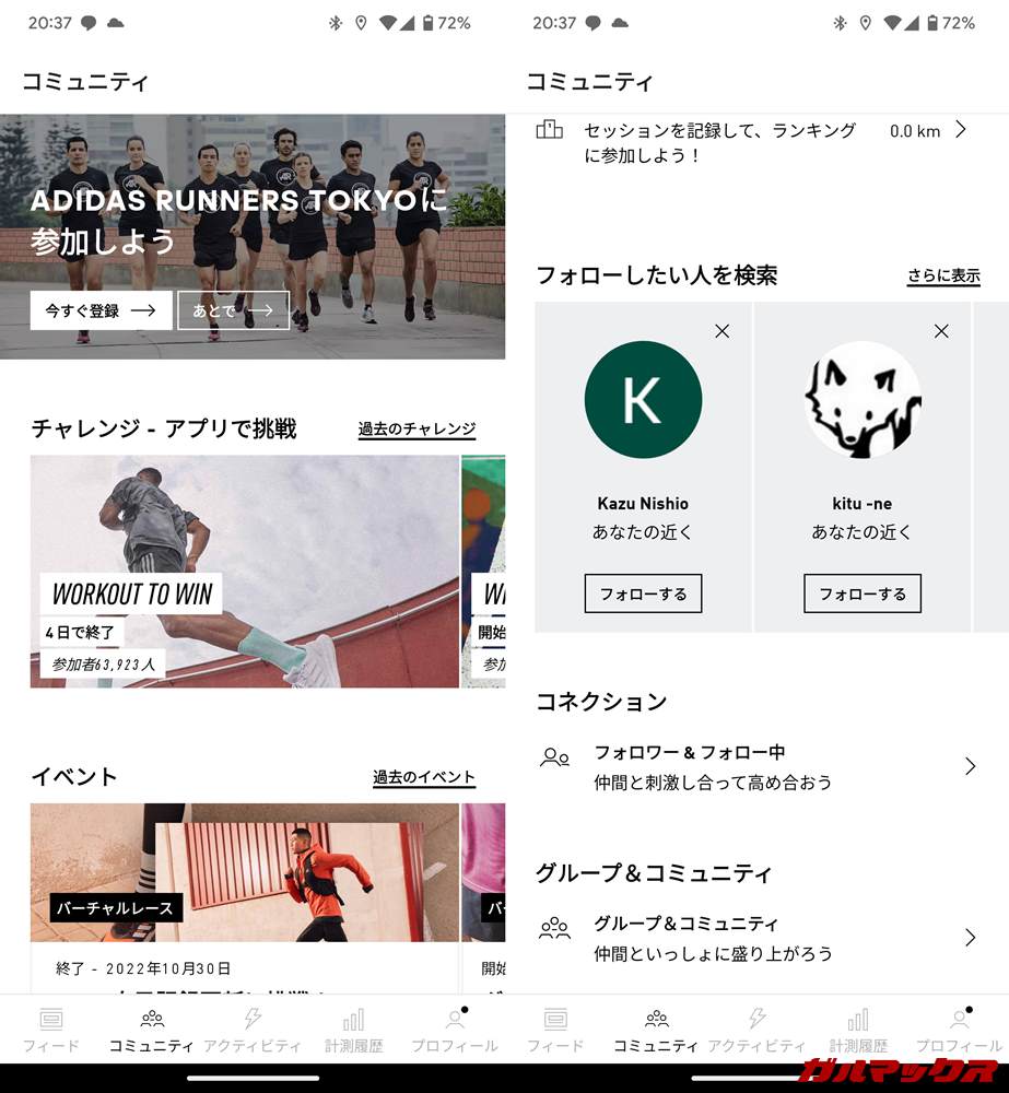▼コミュニティとかアプリで記録更新にチャレンジ!とかそういうこともできるそう。これを気にスポーツ系のコミュニティに仲間入り…ってこともできますね。 気の合う仲間を作って一緒にランニングしてみてえなぁ。↓
