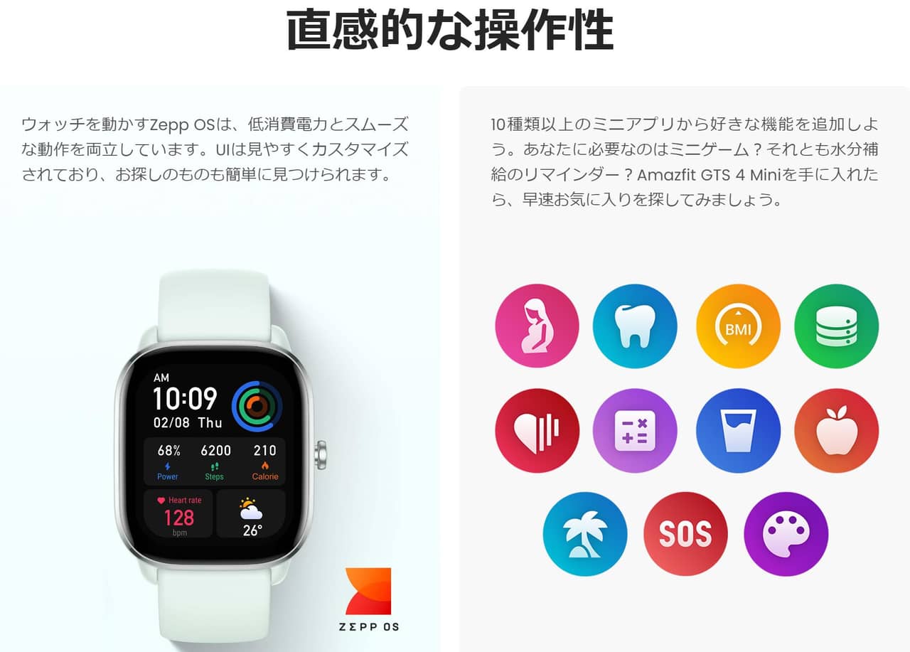 Amazfit GTS 4 Miniの特徴は以下の通り!