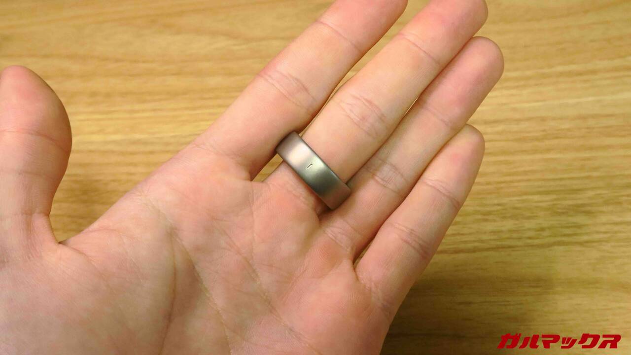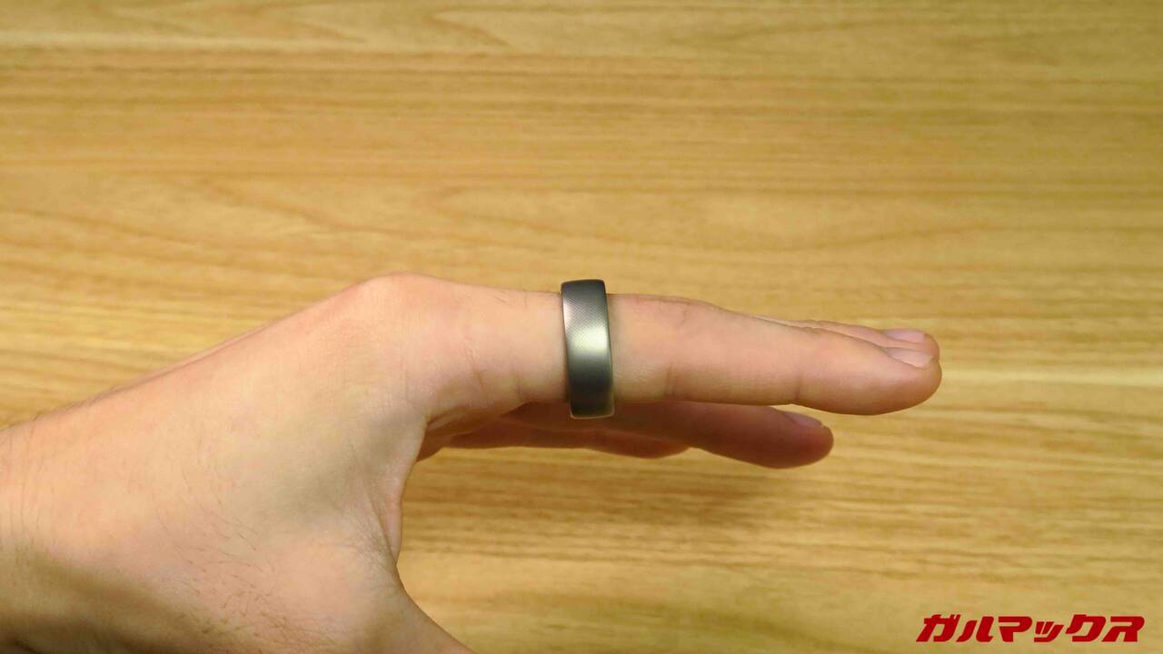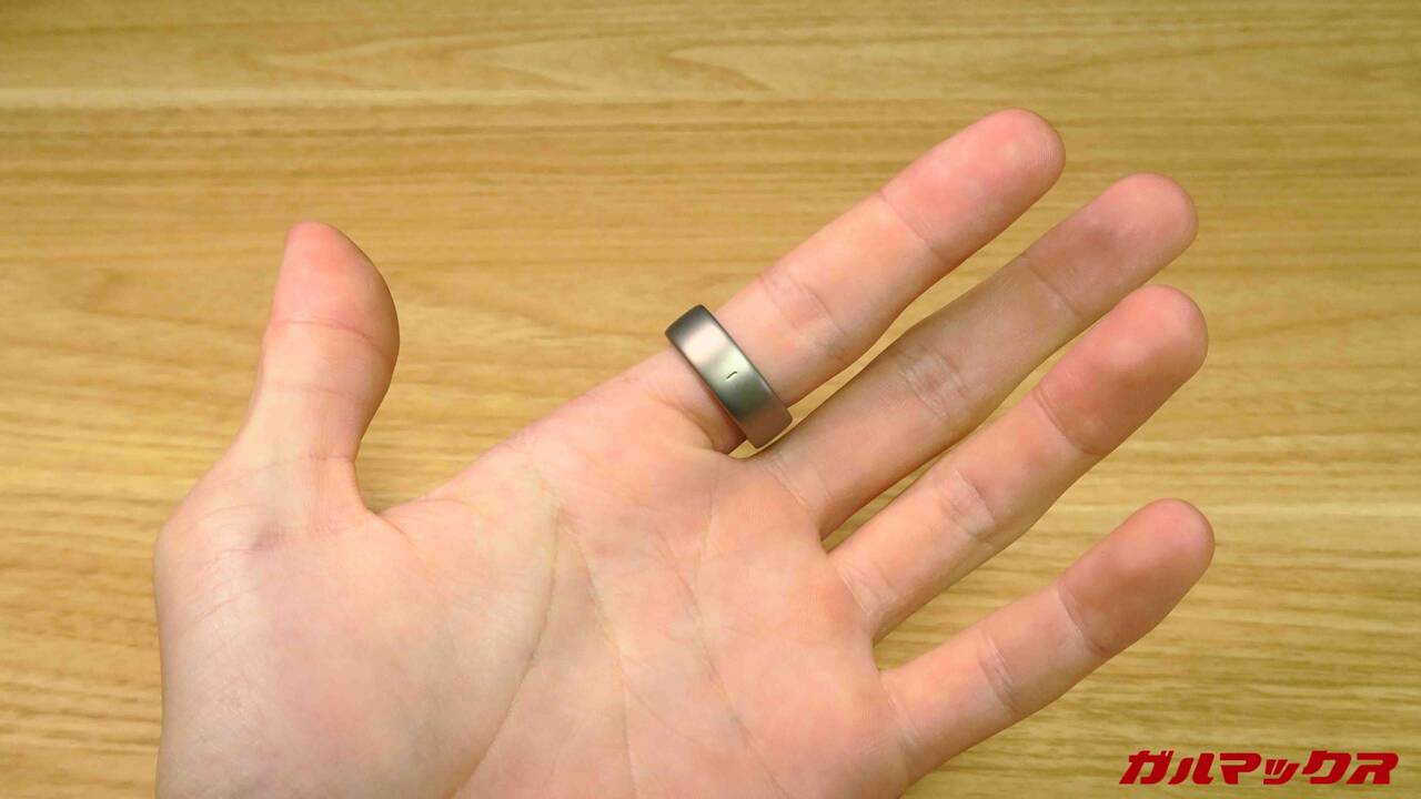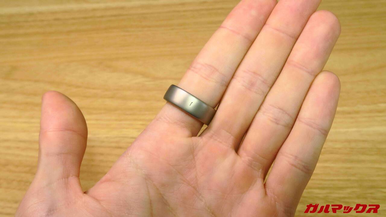 Amazfit Helio Ringの外観はこんな感じ。取材のときにも触れていたのですが結構「指輪としては」主張はでかいです。電子機器+バッテリーなんで致し方ないけどね。